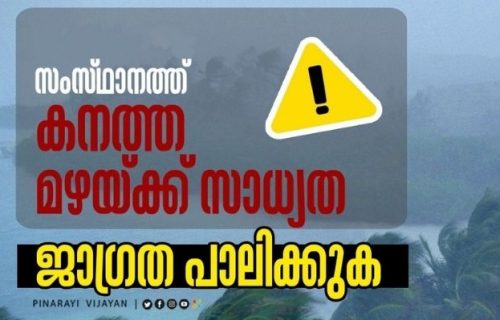 തെക്കൻ ബംഗാൾ ഉൾക്കടലിൽ രൂപപ്പെട്ട ചക്രവാത ചുഴിയെ തുടർന്ന് കേരളത്തിൽ ഇന്ന് അതിശക്തമായ മഴയ്ക്ക് സാധ്യത എന്ന് കേന്ദ്ര കാലാവസ്ഥ കേന്ദ്രത്തിന്റെ മുന്നറിയിപ്പ്. ഇടുക്കിയിൽ ഓറഞ്ച് അലേർട്ടും, കോട്ടയം, പത്തനംതിട്ട, കൊല്ലം,എറണാകുളം ജില്ലകളിൽ യെല്ലോ അലേർട്ടും പ്രഖ്യാപിച്ചു. കേരള, കർണാടക, ലക്ഷദ്വീപ് തീരങ്ങളിൽ മത്സ്യബന്ധനത്തിന് തടസമില്ലെങ്കിലും മൽസ്യത്തൊഴിലാളികളും തീരദേശവാസികളും ശ്രദ്ധിക്കണമെന്ന് മുന്നറിയിപ്പ് ഉണ്ട്.