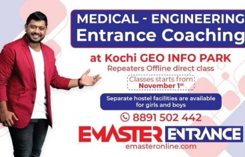 കൊച്ചി ജിയോ ഇൻഫോപാർക്കിലാണ് Emaster എൻട്രൻസ് കോച്ചിംഗ് ഇൻസ്റ്റിറ്റ്യൂട്ട് ആരംഭിച്ചിരിക്കുന്നത്. മെഡിക്കൽ- എഞ്ചിനിയറിംഗ് എൻട്രൻസിന് തയ്യാറെടുക്കുന്നവർക്ക് ഫുൾ-ടൈം ക്ലാസ്സുകൾ Emaster ഒരുക്കിയിരിക്കുന്നു. ഏതു ജില്ലയിൽ നിന്നുമെത്തി പഠിക്കാനുള്ള സൗകര്യം Emaster തയ്യാറാക്കിയിട്ടുണ്ട്. മാത്രമല്ല, ആൺകുട്ടികൾക്കും പെൺകുട്ടികൾക്കും പ്രത്യേകം ഹോസ്റ്റൽ സൗകര്യവും ലഭ്യമാണ്.ആധുനിക സജ്ജീകരണങ്ങളുള്ള ക്ലാസ്റൂമുകളും മികച്ച അധ്യാപകരുമാണ് Emaster എൻട്രൻസ് കോച്ചിംഗ് ഇൻസ്റ്റിറ്റ്യൂട്ടിന്റെ മുതൽക്കൂട്ട്.