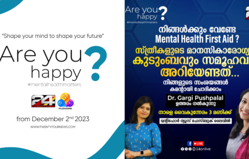 ഫ്ളവേഴ്സും 24 ന്യൂസും ചേര്ന്ന് ആരംഭിച്ച ‘Are you happy’ എന്ന മെന്റല് ഹെല്ത്ത് ക്യാമ്പയിന് അവസാന ഭാഗത്തേക്ക് എത്തുകയാണ്. സാമൂഹിക കലാ രാഷ്ട്രീയ സാംസ്കാരിക രംഗത്തെ പ്രമുഖരും ഈ ക്യാമ്പയിനിന്റെ ഭാഗമായി അണിചേർന്നിരുന്നു. (Are you Happy mental health campaign | Interview with Dr. Gana PC)