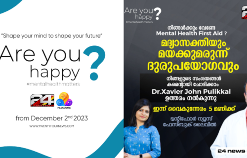 ഫ്ളവേഴ്സും 24 ന്യൂസും ചേർന്ന് ‘Are you happy‘ എന്ന മെന്റൽ ഹെൽത്ത് ക്യാമ്പയിൻ ആരംഭിച്ചിരിക്കുകയാണ്. ഡിസംബർ 15 വരെയാണ് ക്യാമ്പയിൻ നീളുന്നത്. സാമൂഹിക കലാ രാഷ്ട്രീയ സാംസ്കാരിക രംഗത്തെ പ്രമുഖരും ഈ ക്യാമ്പയിനിന്റെ ഭാഗമായി അണിചേരുന്നു. (Are you Happy mental health campaign | Interview with Dr. ഗാർഗി )