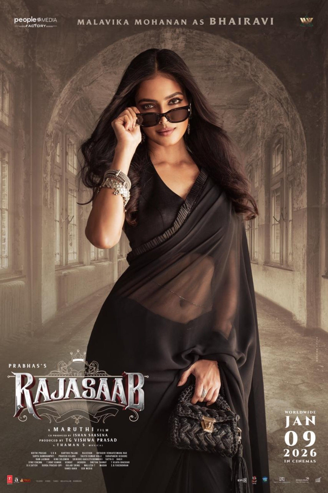 കറുപ്പ് സാരിയിൽ ബോൾഡ് ലുക്കിൽ മാളവിക! ‘രാജാസാബി’ലെ ഭൈരവിയെ പരിചയപ്പെടുത്തി അണിയറ പ്രവർത്തകർ, ചിത്രം ജനുവരി 9ന് തിയേറ്ററുകളിൽ