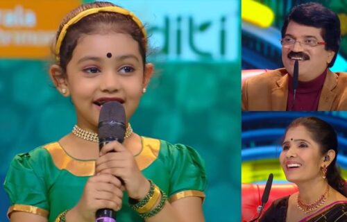 ഭാവയാമി മിണ്ടിത്തുടങ്ങിയാൽ പിന്നെ ചുറ്റുമുള്ളതൊന്നും കേൾക്കാൻ കഴിയില്ല; വേദിയെ പൊട്ടിച്ചിരിപ്പിച്ച് കുഞ്ഞു ഗായിക
